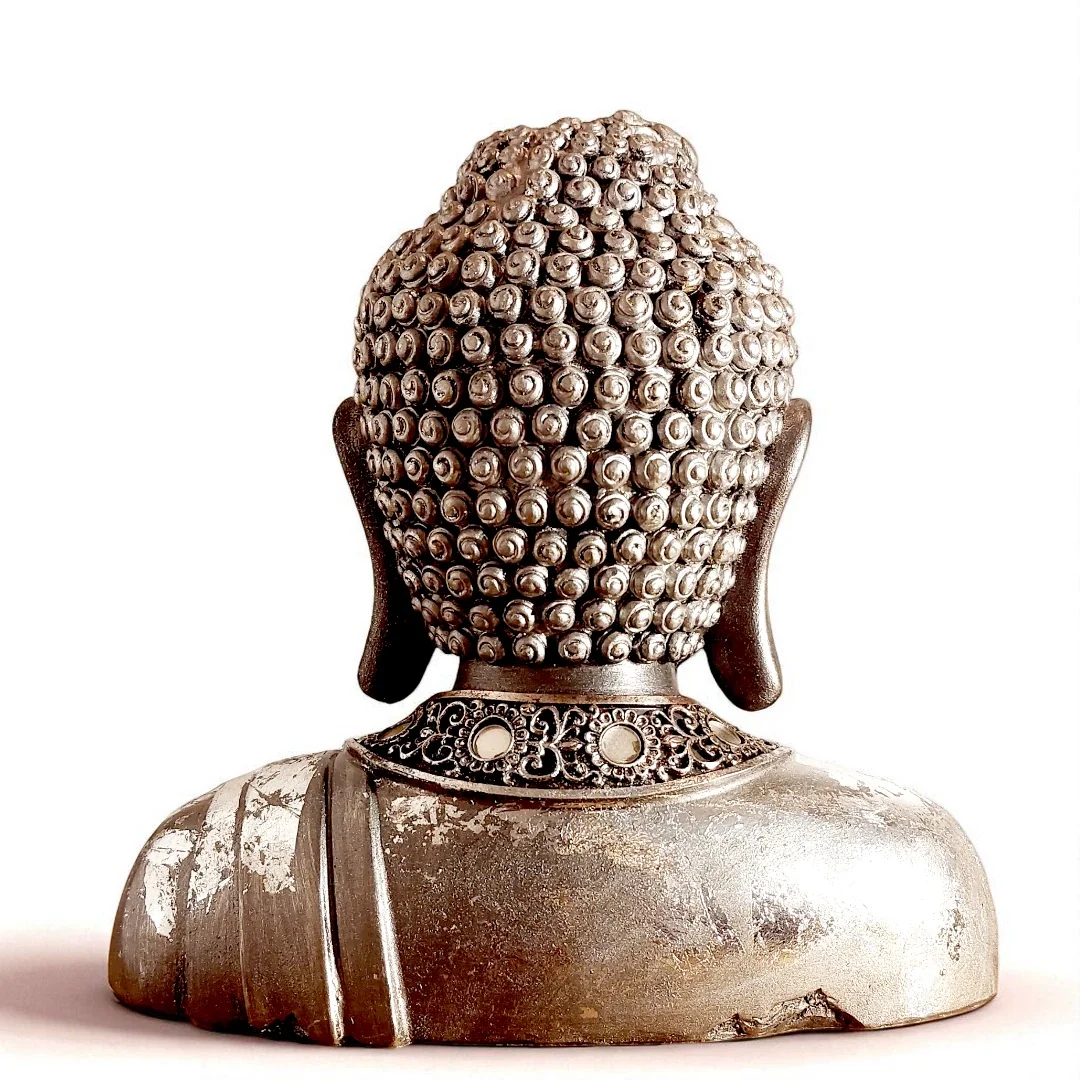Buddha Bust Idol – Grey with Silver Accents, Superior Polyresin, Realistic Detailing
