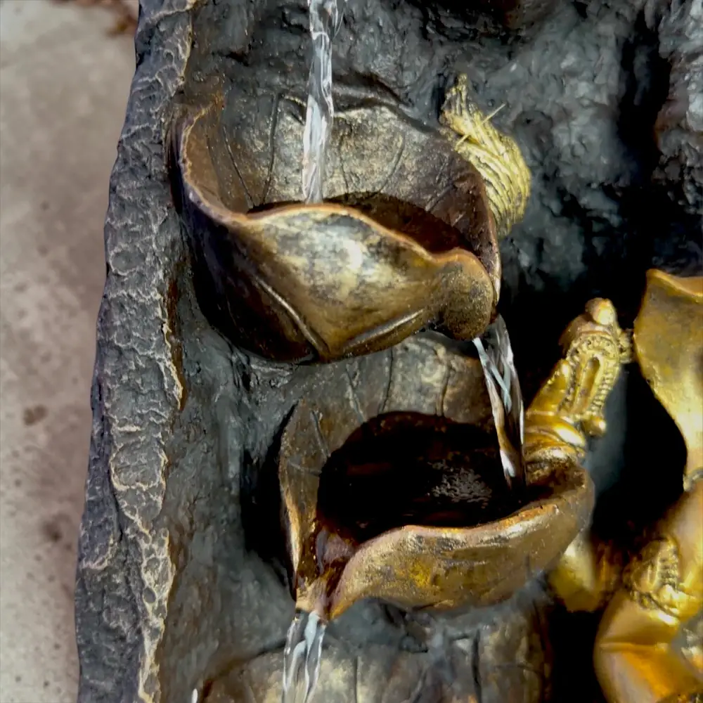 Furthermore, the fountain is ideal for display in living rooms, pooja rooms, home temples, office reception areas, meditation spaces, and entrance foyers. Its compact tabletop size, moreover, makes it versatile for placement on desks, shelves, or as a statement centrepiece on a coffee table.